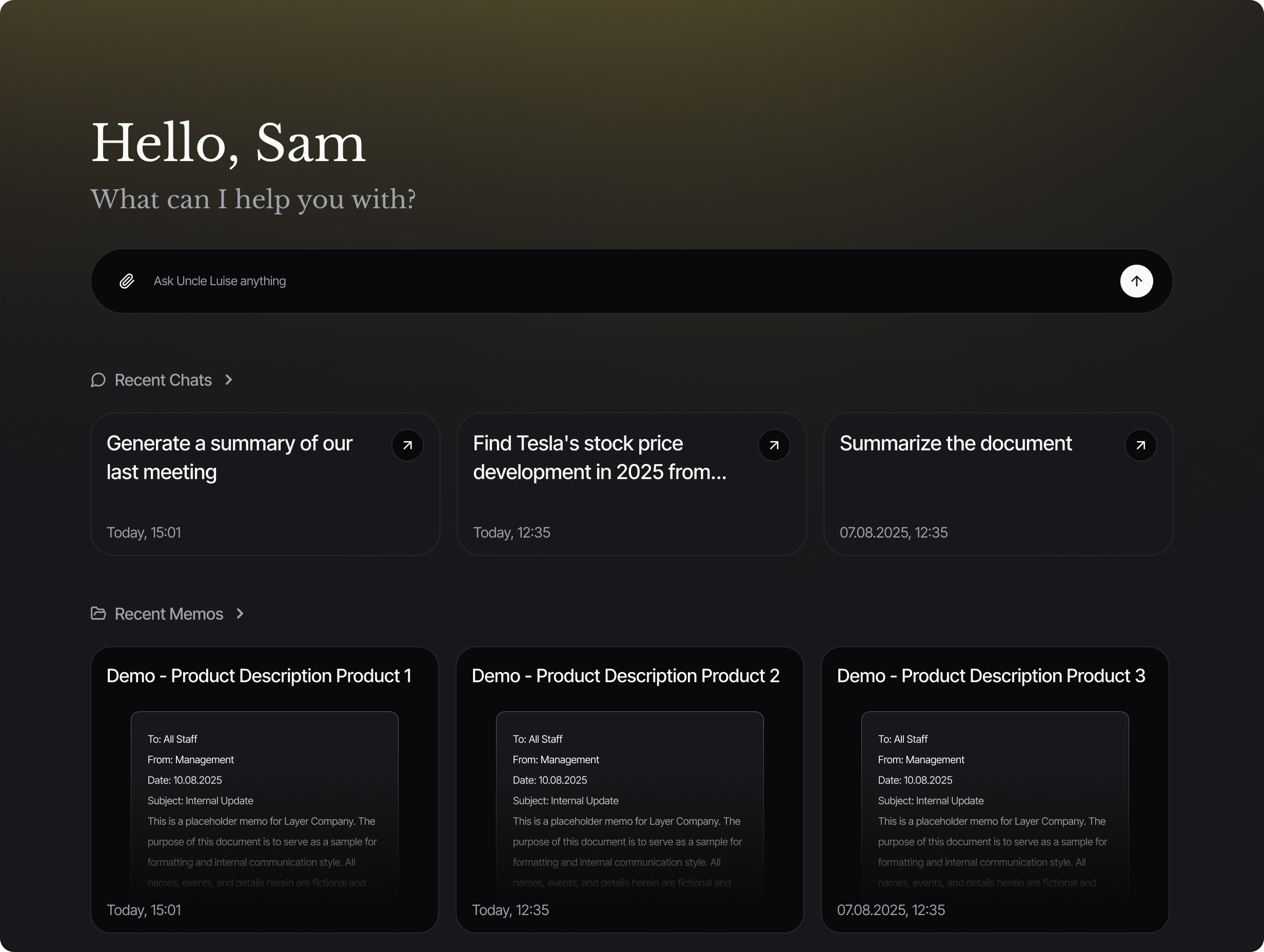 Uncle Louis is built on strict GDPR compliance, enterprise-grade encryption, and full data ownership for your firm. Every interaction stays confidential, so advisors can work with absolute peace of mind.